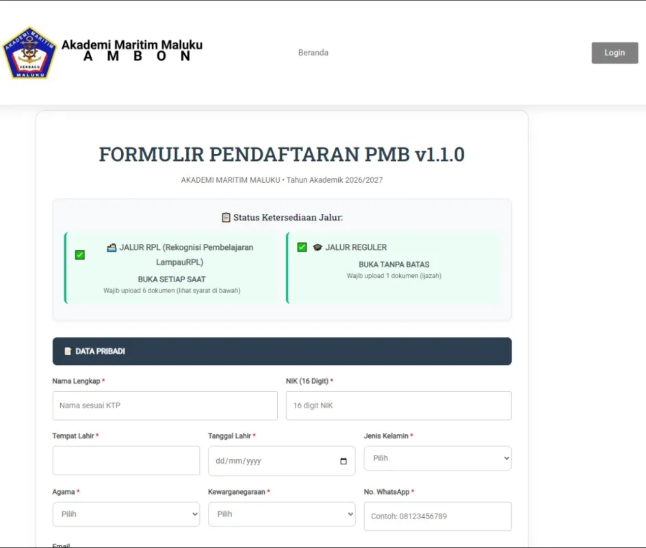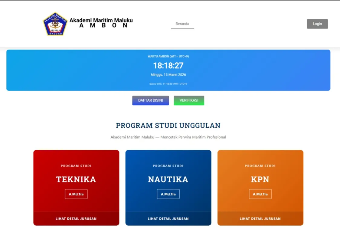 Kami mengembangkan platform pendaftaran online strategis untuk AMM Ambon yang mengutamakan kemudahan navigasi dan efisiensi administrasi. Website ini dirancang untuk menyederhanakan alur pendaftaran calon mahasiswa, mulai dari pengisian formulir hingga verifikasi data, dengan antarmuka yang responsif dan sistem manajemen database yang aman